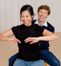 La conexión de las manos y los brazos, la cintura escapular y el tronco afecta a nuestra respiración y a nuestra voz. Las áreas sensibles alrededor de la laringe, nuestro “generador de voz”, deben sentirse ligeras y amplias, e idóneamente nuestros gestos respaldan nuestras expresiones personales.